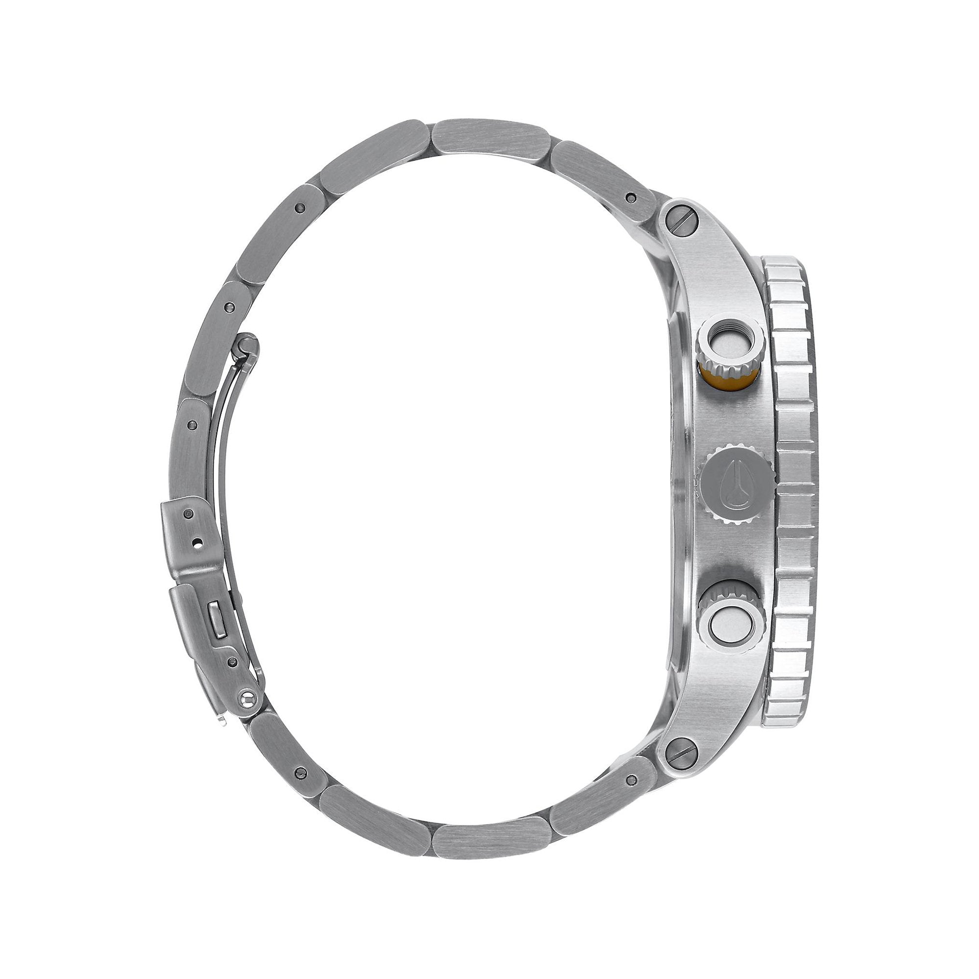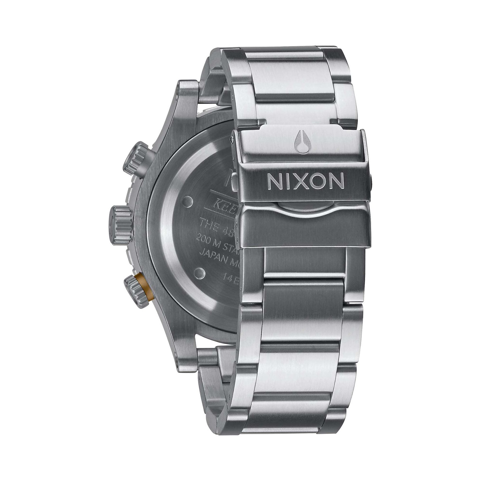 48 mm stainless steel round case with grey dial and mineral crystal. Luminescent hands. Minute marker around the rim, date window at the 6 o'clock position and logo above the 6 o'clock position. It comprises Arabic numeral and index markers in addition to the hour, minute and second clock hands.