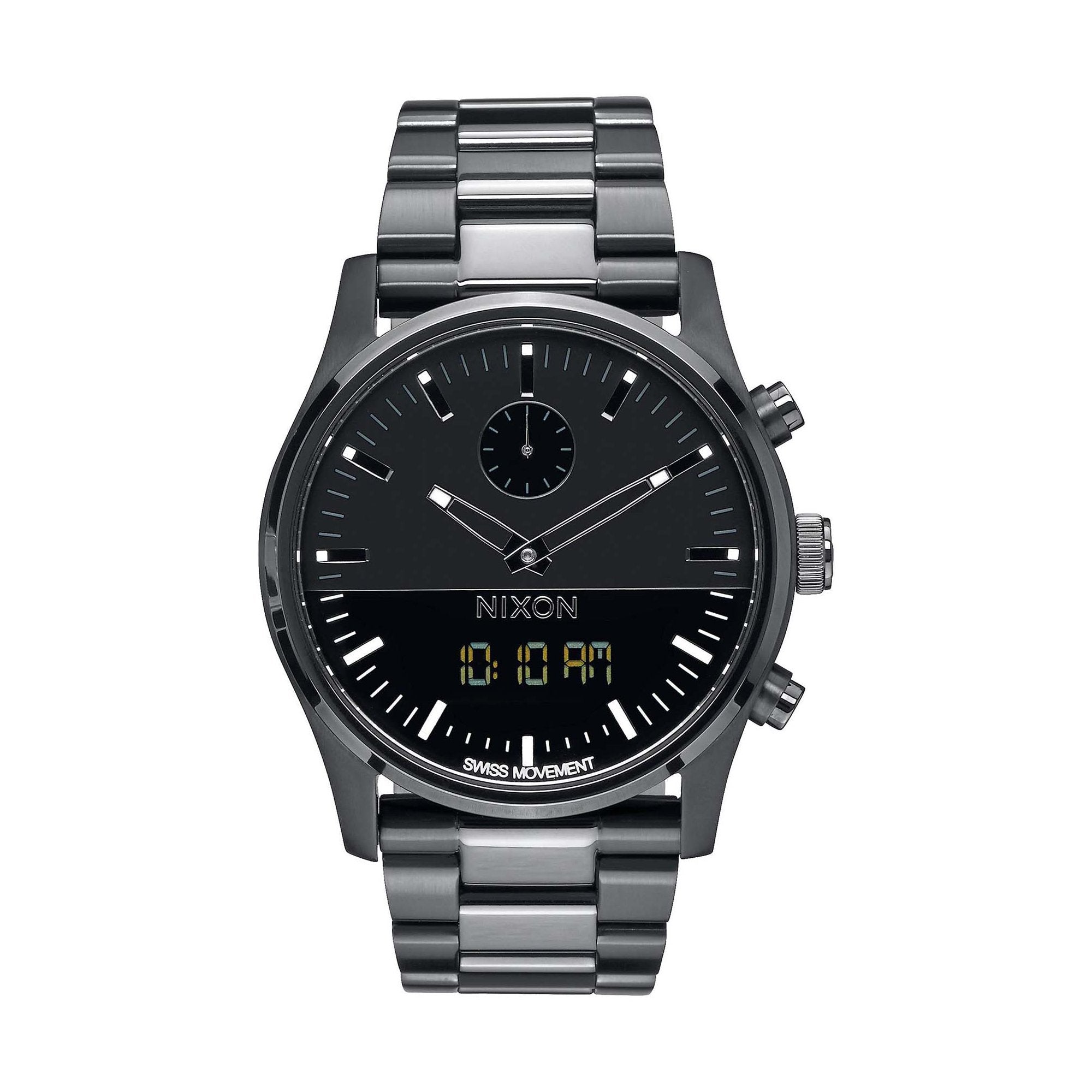 Black ion-plated stainless steel case and bracelet. Fixed black ion-plated bezel. Black dial with luminous black hands and index hour markers.