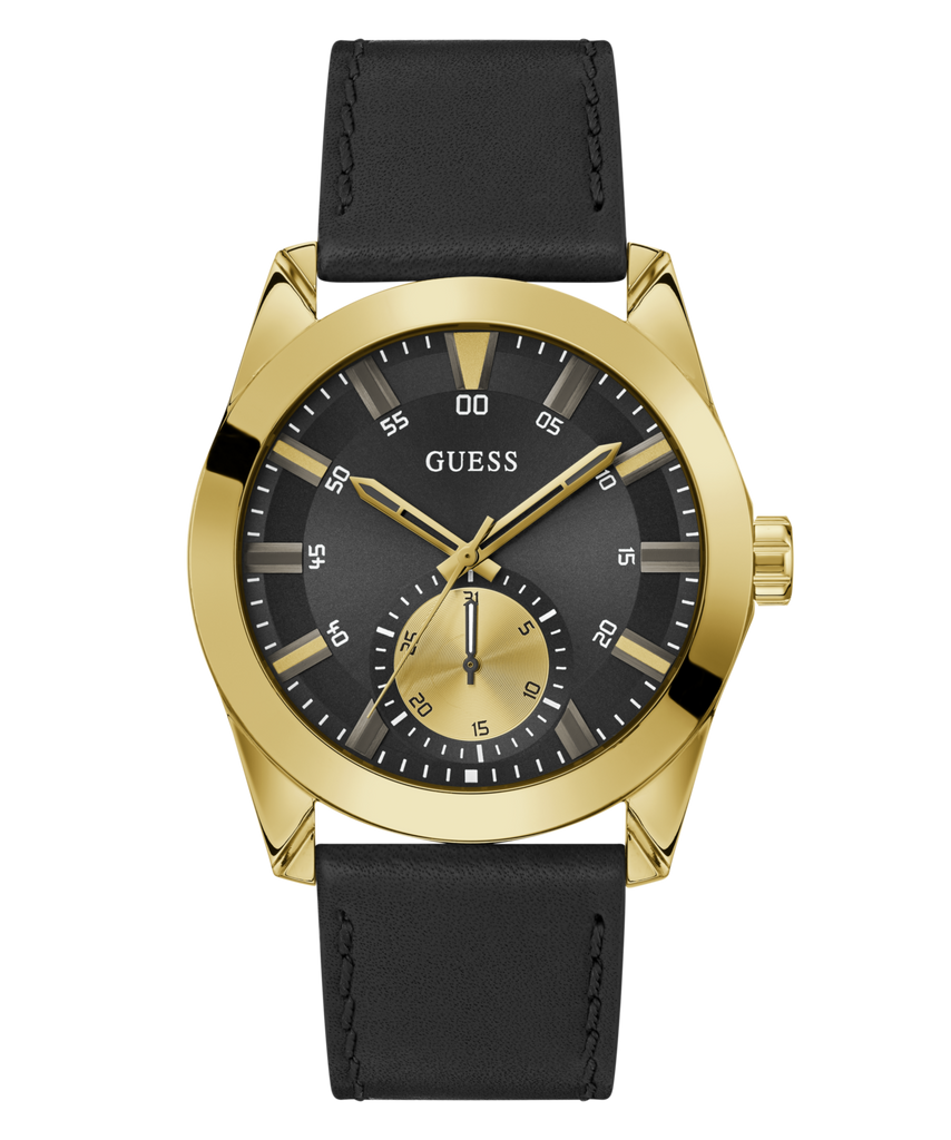 Guess - Mens Classic Watch 44mm - Gold Case/Black Sunray Dial/Black Leather Strap (GW0793G2)