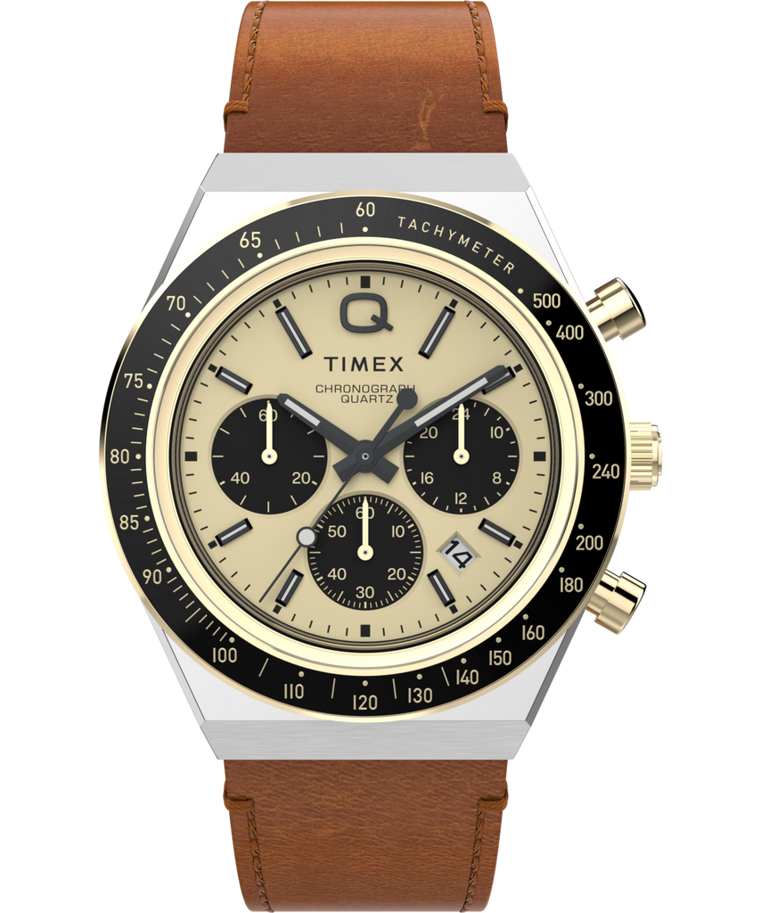 Q Timex - Diver Inspired Chrono 40mm - 2-tone Case/Gold Dial/Brown Leather Strap (TW2W64400)