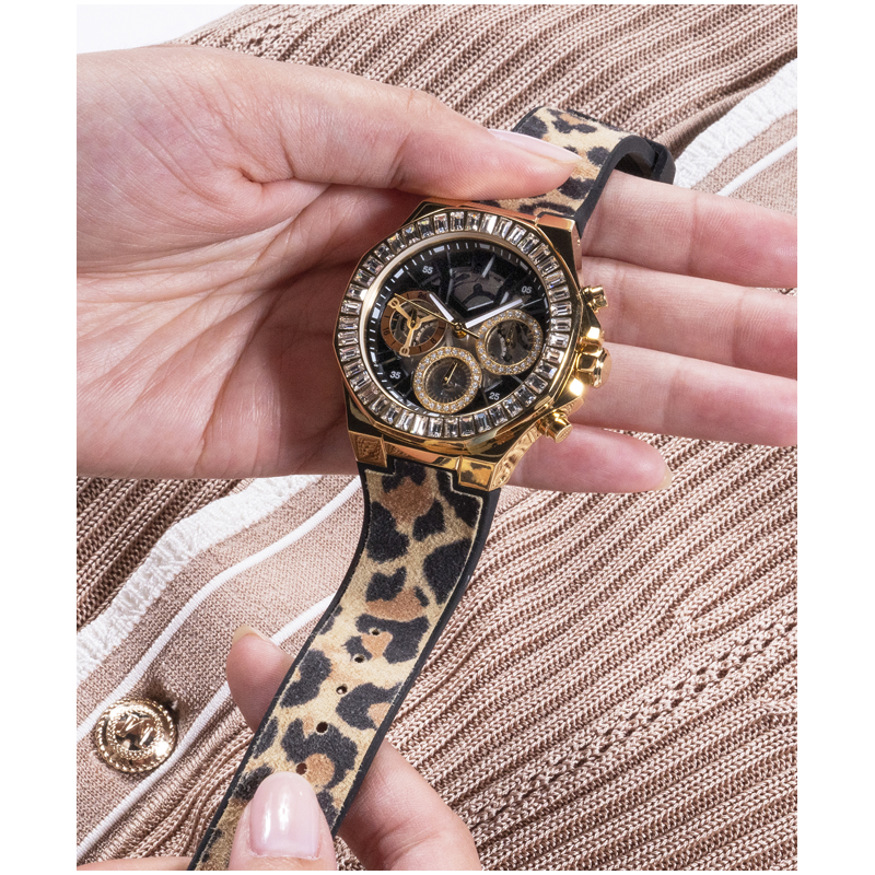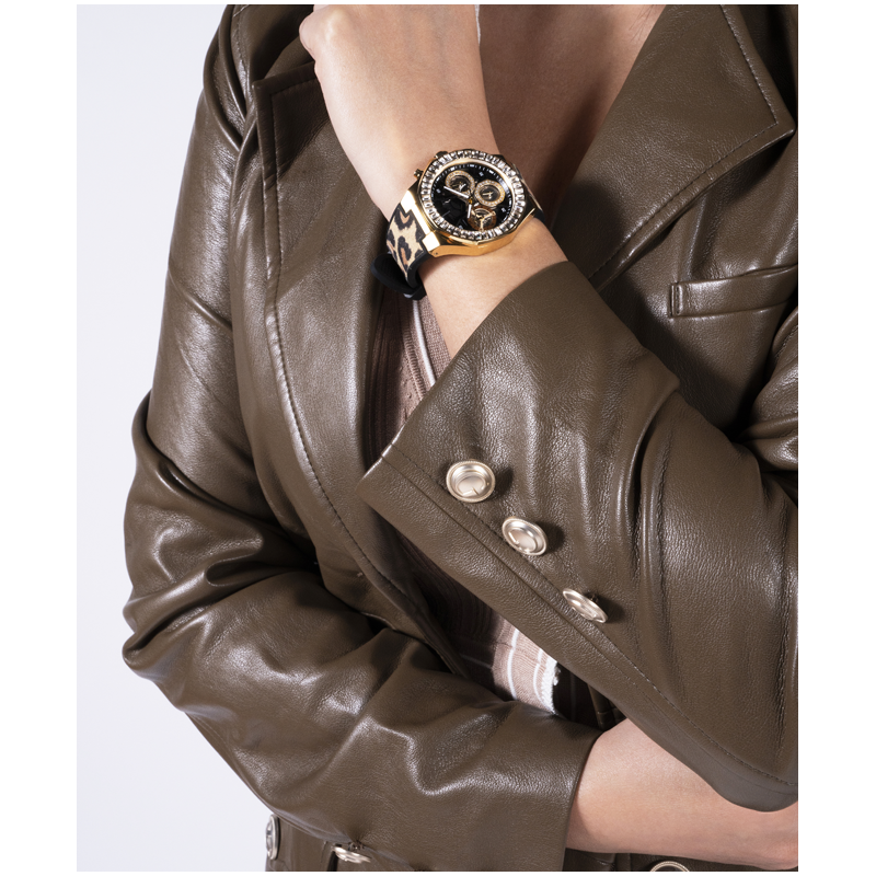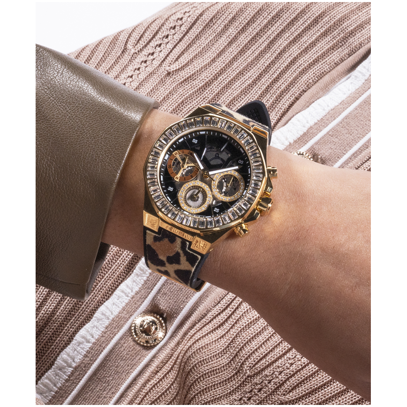 Gold Tone 40mm Case & Genuine leather/Silicone Strap Watch