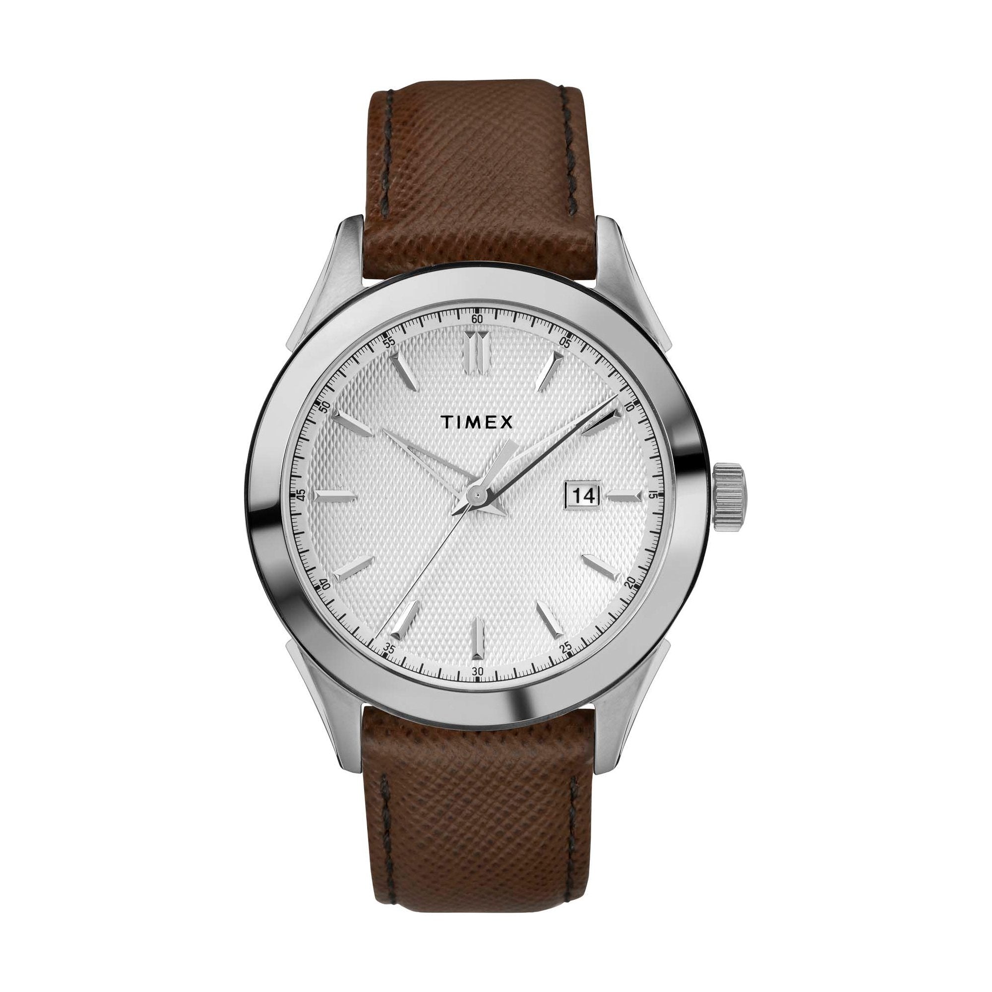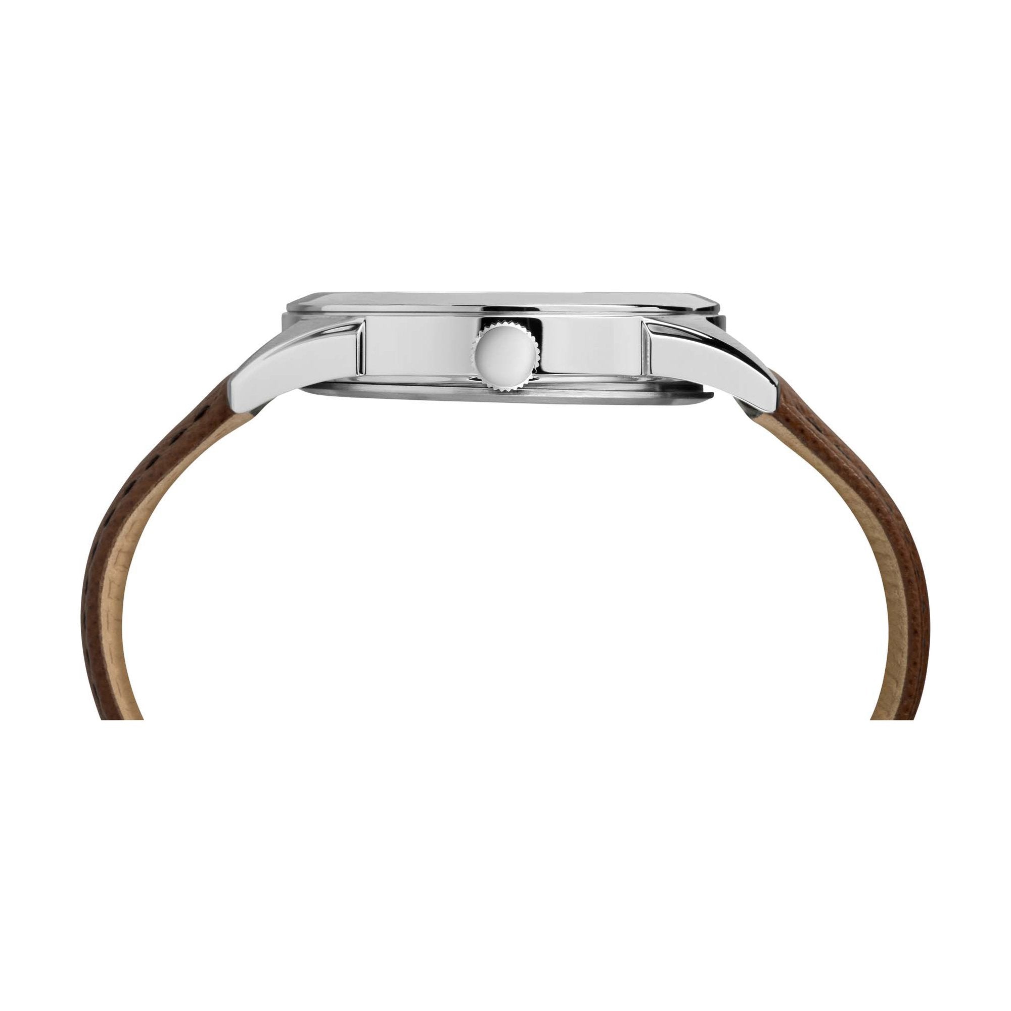 A timepiece well-suited for everyday wear, the Torrington™ watch is designed with a classic look that is both simple and elegant. This watch design features a date display, Stainless Steel case, silver-white dial and brown leather strap.
