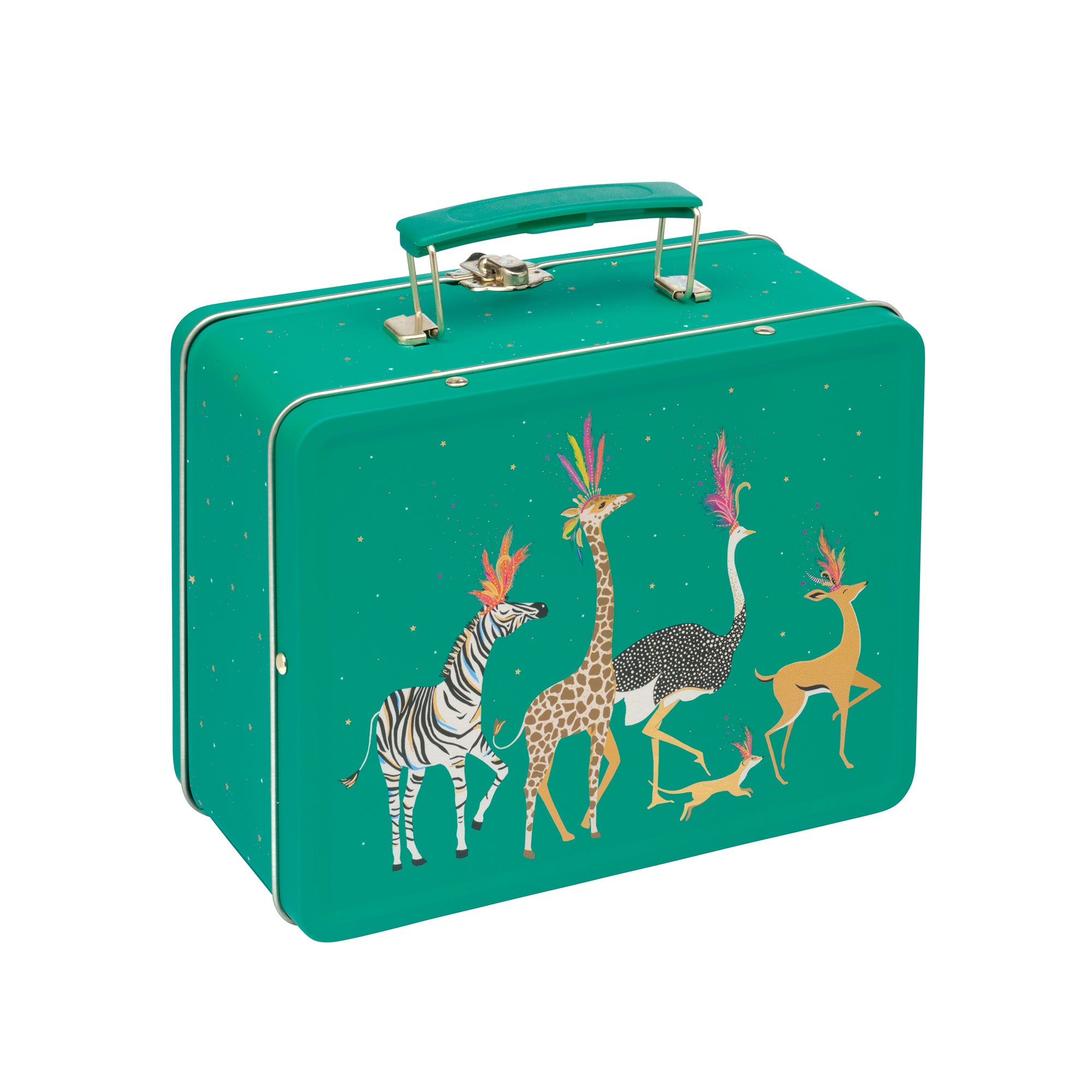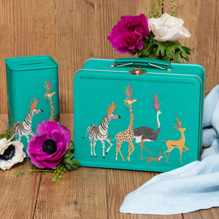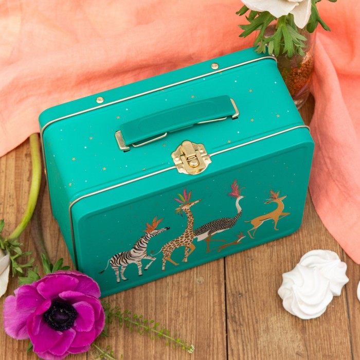 Brighten up your lunchtimes with this Animal Parade Lunch Box Tin from Sara Miller London. The ideal storage place for your on-the-go meals, this charming kids lunch box features a delightful scene showing exotic animals in playful, colourful headdresses - and is even embellished with rich gold detailing for an extra luxurious touch. The useful handle makes this spacious tin perfect for carrying around with you and is sure to turn heads.