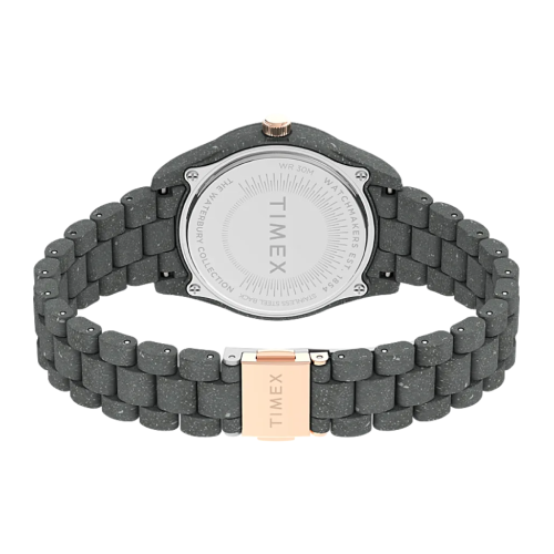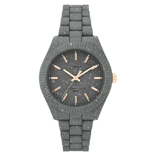 We’re redesigning our past to take care of our future with the Waterbury Ocean collection. Featuring a case, bracelet, and dial crafted from upcycled, ocean-bound plastic, this remarkable wristwatch is the first Timex of its kind. Our partnership with #tide™ means its journey from waste to wrist begins with fishermen collecting plastic from the coastlines; the waste is washed and shredded before making its way to Switzerland via carbon-neutral transportation; and finally, it’s repurposed on-site, resulting in a premium, sustainable material. Waterbury Ocean’s gray, marine-inspired dial features unique flakes of shredded material, while the classic Waterbury construction itself honors our rich legacy in traditional watchmaking. Navigate uncharted waters ahead with all the trusted functionality you’d expect from a Timex—luminant hands and 30 meters of water resistance—and join us in working toward a cleaner tomorrow.